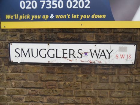 Road sign, Smugglers Way, Wandsworth.