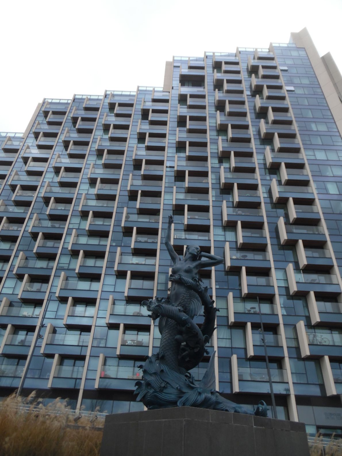 Tower block and sculpture, Jubilee Greenway / Thames Path, Greenwich.