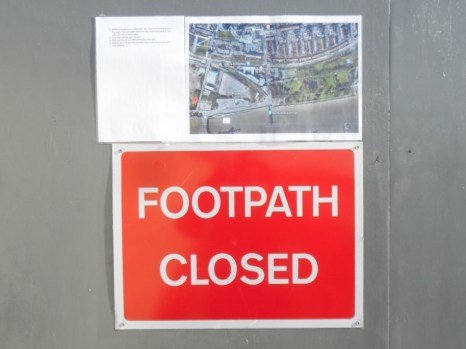Footpath closed sign, Jubilee Greenway, North Woolwich.