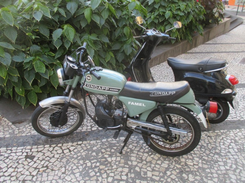 If you look at the livery you will see that it is a Zundapp Famel which I must confess I had never heard of and so had to look up. Famel is an acronym of Fabrica de Produtos Metalicos Lda., a Portuguese company specialising in mopeds and whose heyday was in the 1960’s and 70’s and who were manufacturing machines using Zundapp engines right up until the 1990’s.