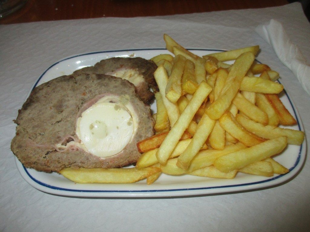 “Again a choice is difficult but the meal I had on the last day just before I left for the airport was something new to me and very good. I am not sure of the exact cooking method and the cook was too buy for me to bother her but as best I can tell it was some sort of pork fillet stuffed with boiled eggs, roasted and then sliced much in the manner of a British game pie. I could have had it with various accompaniments but I opted for simple chips (French fries) and they went well. If memory serves it was €6 which, given the very favourable exchange rate I was getting to the £, made it an absolute steal.”