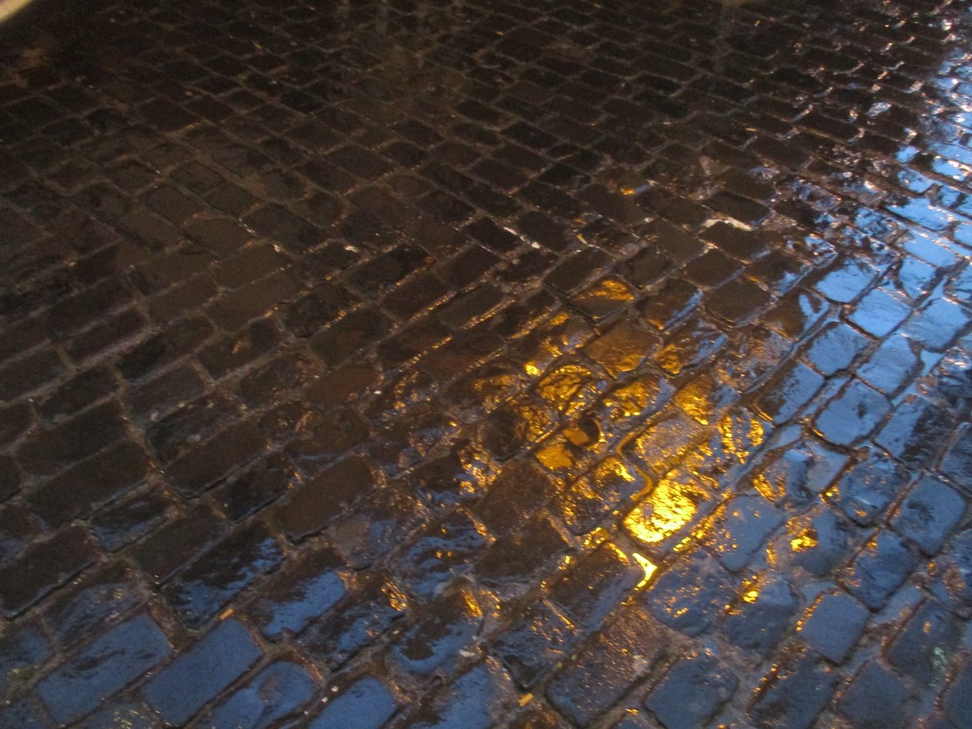 Speaking of images, I have unusually included every image I took that day, all four of them, which shows you what I did, or more accurately didn’t do. I know it may not always seem like it but I do usually select the best images (in my opinion) from my collection. I realise that the two images of the soaked cobblestones outside the bar are quite similar but I was being uncharacteristically “artistic” and trying to get the best angle on the shot which was taken from the sanctuary of the pub door. Damned if I was going out in that monsoon!