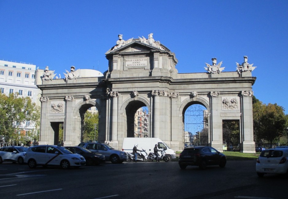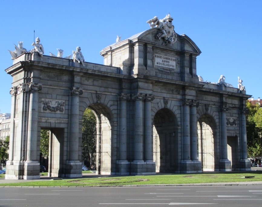 The gate was commissioned in 1774 by King Carlos III and eventually finished in 1778. It is to the design of Francesco Sabatini (1722 – 1797) who was actually Italian but had received patronage from the King when the latter was formerly the Duke of Parma and Tuscany. This royal connection led to him being given many Royal commissions and elevated him into the innermost circles of high society with numerous honorary ranks bestowed upon him.