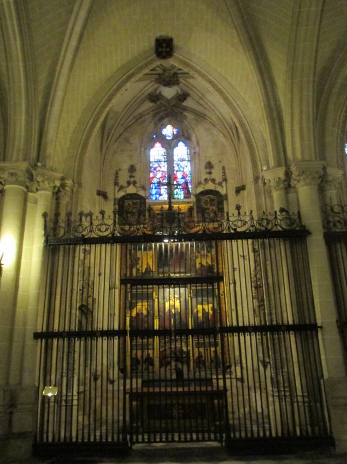 There are numerous chapels around the sanctuary and I did not take images of them all as it would have taken me an age so here is one I picked just to give you an idea. This is the Chapel of the Conception which I chose because of the wonderful wrought iron work and the quality of the paintings which are by Francisco de Amberes. The chapel was funded in 1502 by Juan de Salcedo whose sepulchre is actually within the chapel.