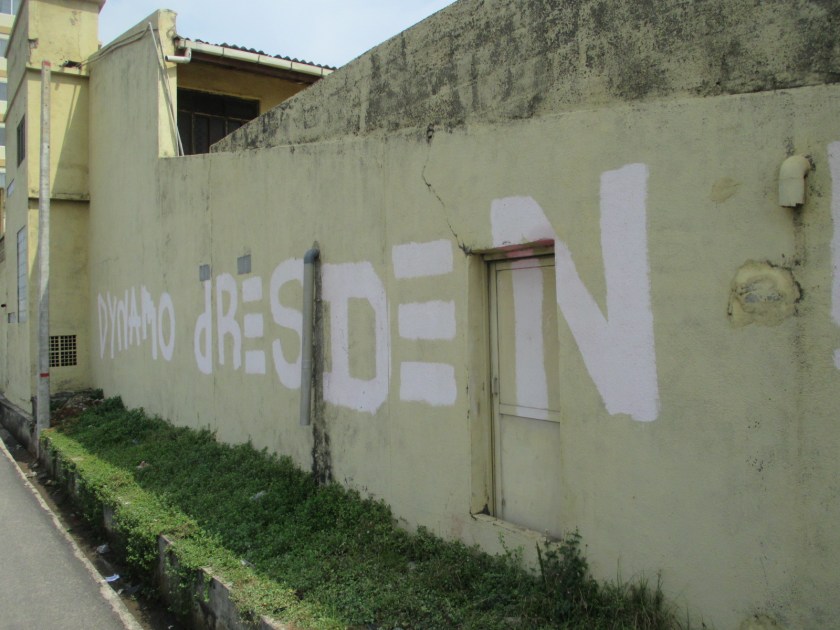 I know that “Western” football (soccer) is huge in Asia. Manchester United have several very expensive restaurants on that continent and in the popularity stakes and I know that continental teams like Barcelona and Inter Milan also have a following but I certainly did not expect to see the graffiti shown above. Dynamo Dresden? They are a team in the Bundesliga (football / soccer top flight in Germany) and I really did not expect to see this. They were an average team then but a quick look on the internet shows they are top o the Bundesliga at time of writing (January 2021). Go Dresden, as the Americans might say and I never would. Oops, I just did.