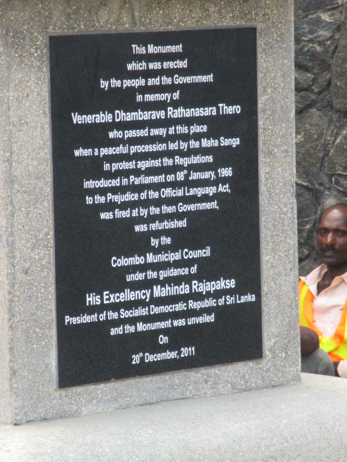 Approaching the Southern outskirts of Colombo proper, I came upon the monument you see above. It is out of the way, will probably never be visited by any organised tour of Colombo and yet it speaks volumes about the post-British history of this lovely country if you take the time to learn it. I would never have discovered this had I not decided to go for a walk.