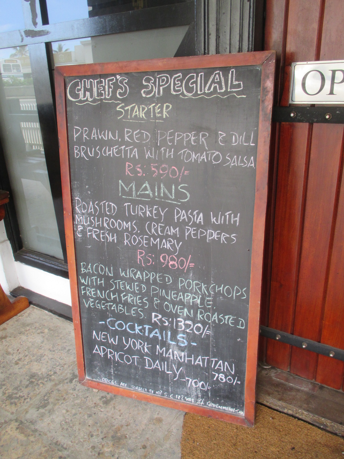 Although German themed the menu seemed fairly pan European / international with the daily specials including bruschetta and a roast turkey pasta of all things. I hope it wasn’t still Xmas leftovers although it didn’y worry me as I didn’t bother to eat there. Whilst I like the occasional bit of “home cooking”, if I am in Sri Lanka I prefer a bit of rice and curry or a devilled dish. I can eat bruschetta and pasta in a hundred Italian restaurants in London, or better still in Italy.