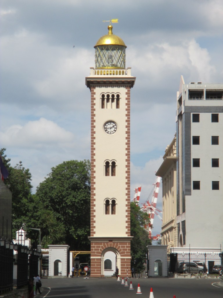 Look at the top and you will see that it is a lighthouse which was built initially as a clocktower, would you believe? It is said that the reason for this is that the wife of the then British Governor Sir Henry Ward, was so annoyed at what she perceived as tardy Oriental timekeeping that she ordered it’s construction.