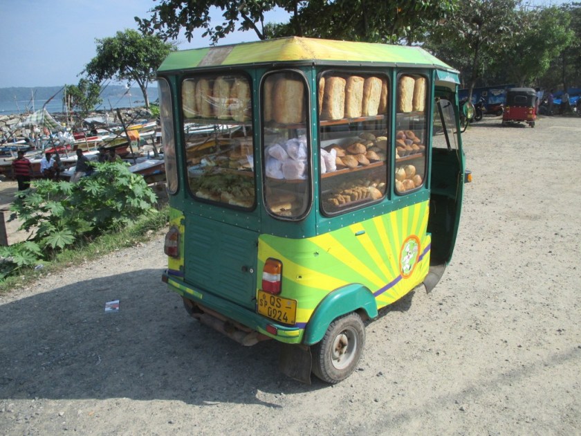 Just recently I have been reading an excellent blog, which I am going to plug shamelessly here because it is so good. It is by a South African couple who have walked several “caminos” i.e. religious pilgrimage walks on the Iberian peninsula. They remarked on their amazement at seeing loaves of bread hanging in polythene bags on the front gates of houses and not being stolen. This is the Sri Lankan equivalent and many a morning I have been awoken by the raucous noise they make on their loudspeakers. I had never actually seen one up close until this point and I think it is quite attractive.