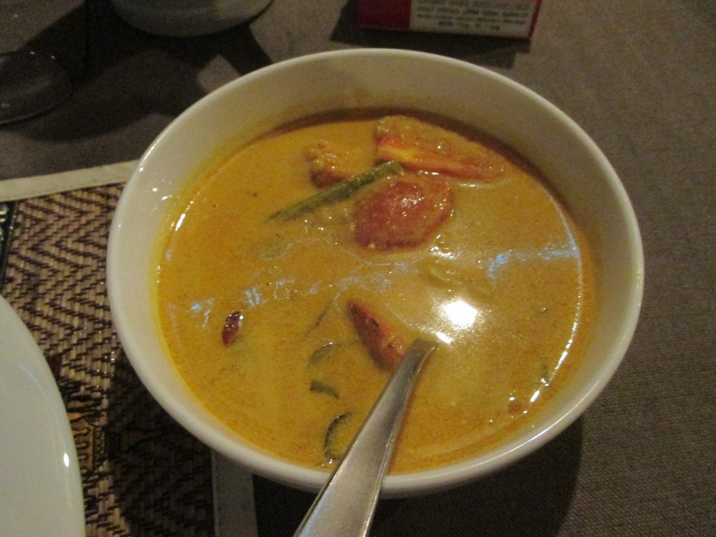 The first night we visited, my new friend Mike did the sensible thing and didn’t even bother looking at the menu but asked the owner what was good that day. We were told that prawn curry was recommended and he ordered that with me following his lead.