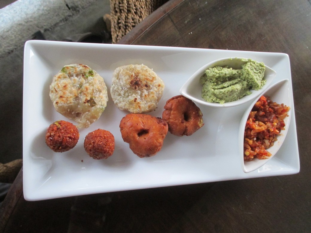 One good thing about going at that time is that they will bring you a complimentary plate of delightful nibbles as pictured. For information the red dipping sauce is hotter than the green one and can be a little fiery!