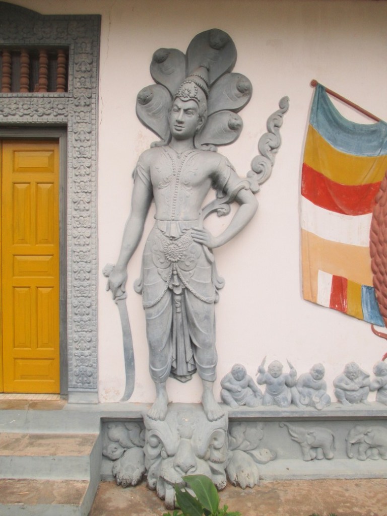 I was wandering through Hikkaduwa one day on a daytrip from Galle en-route to a Buddhist temple I had read about (see below) when I happened upon this statue and decided to investigate. It was a fairly dismal day and so the edifice was certainly not seen to best advantage. Also, Sri Lankans seem to have a penchant for adorning statues with gold paint which does not seem to stand the test of time that well in a country with such diverse weather patterns.