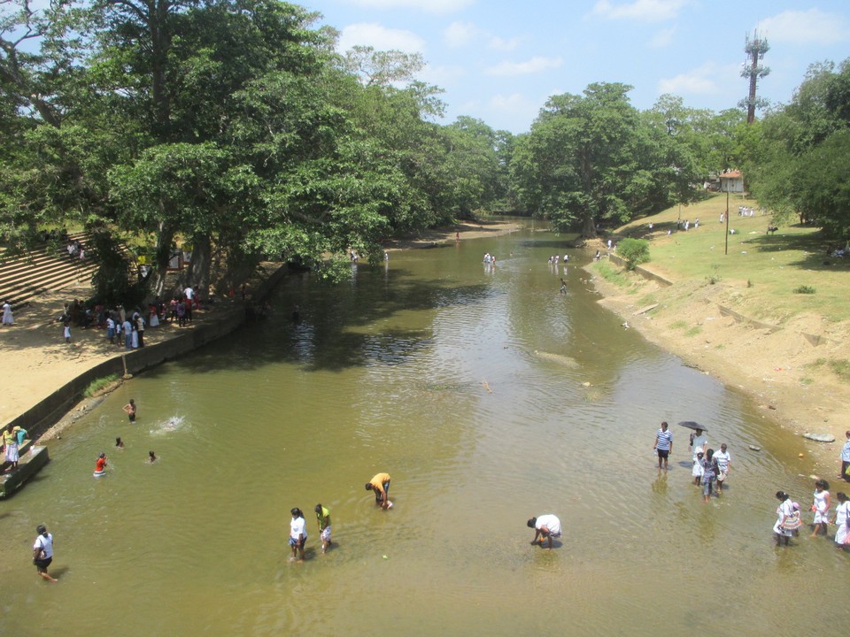 I approached the complex across a bridge spanning the Menik Ganga where there were a number of people bathing although whether this was for religious purposes or merely cooling off I could not say. Beside the bridge was a tree adorned with what I presume were offerings and bizarrely many of them were number plates from vehicles. The third image obviously shows times which I am guessing must be religious services.