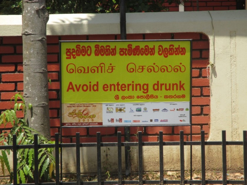 I did see this sign at the entrance to the complex which I had missed on the way in and which brought a wry smile to my lips. Even if you were so ignorant as to contemplate doing such a thing you would struggle for the reasons outlined above i.e. no drink in the town of Kateragama but I had a solution.