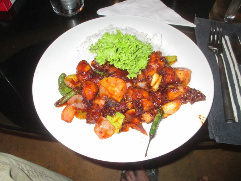Feeling so good, it was off out for a meal which looks to me very much like a devilled dish, just look at the chiilies.