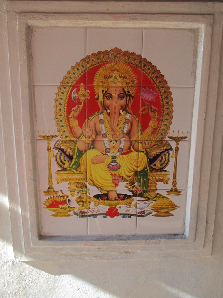 Only a short way along the road from the bookshop I came upon another temple and another bit of a mystery regarding religious practices in Sri Lanka. As soon as I entered the compound I saw the Buddha image you can see but not twenty feet away was the beautiful tiled image of Lord Ganesh, a Hindu deity that I have a certain attachment to.
