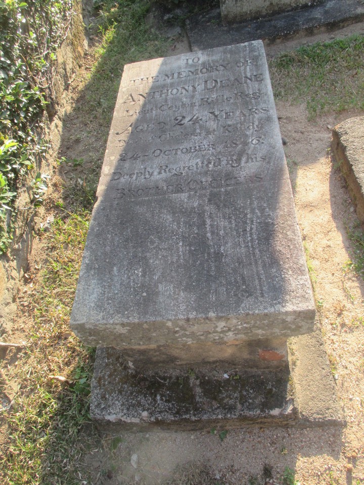Disease, specifically cholera, also accounted for 24 year old Lt. Anthony Deane of the Ceylon Rifle Regiment in 1846. Wouldn’t you just know it, the CRR are an interesting bunch as well? They were raised in 1795 from Malay prisoners languishing on the island of St. Helena (where Napolen ended up 20 years later) where they had been sent after being captured fighting for the Dutch in what was then the Dutch East Indies.