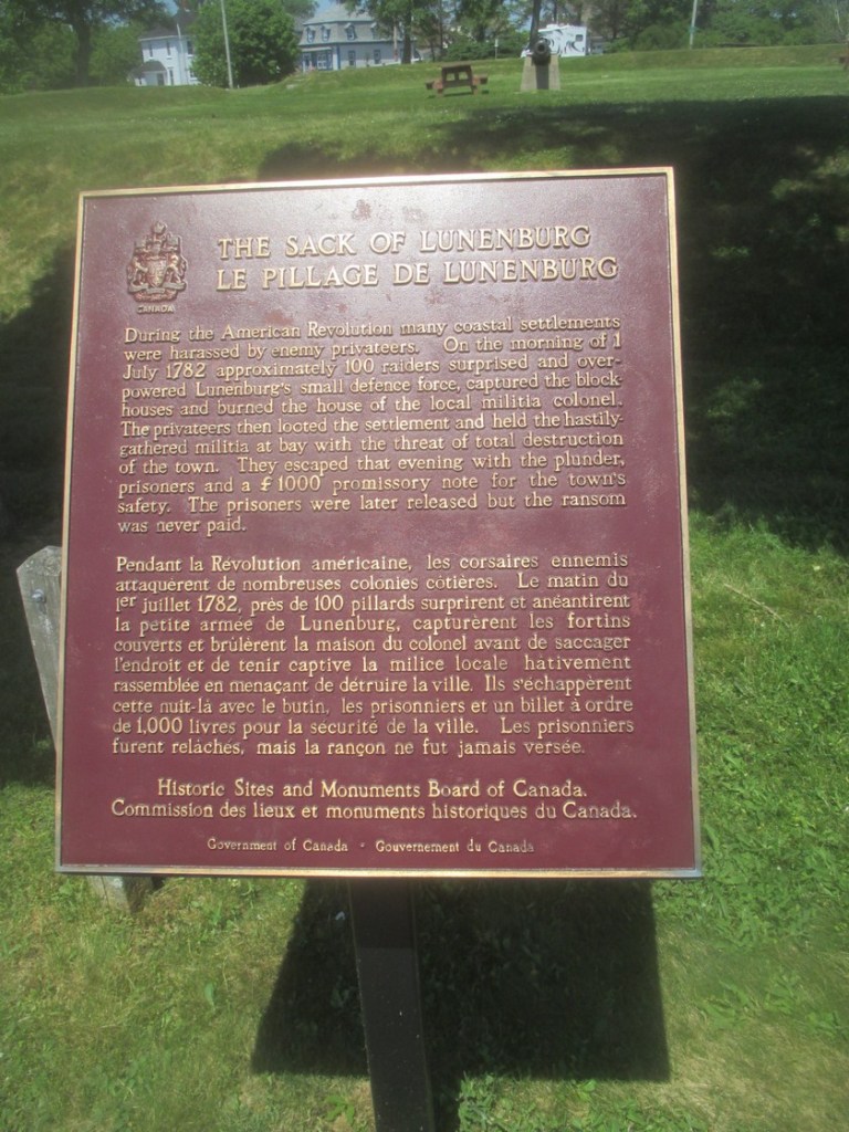 The third “monument” is merely a small plaque of the official bilingual variety which you see all over the place and this describes the sack of Lunenburg in 1782 when the town was attacked by privateers who eventually left with their plunder and a promissory note for £1000 which was apparently never paid. I wonder what that is worth now.