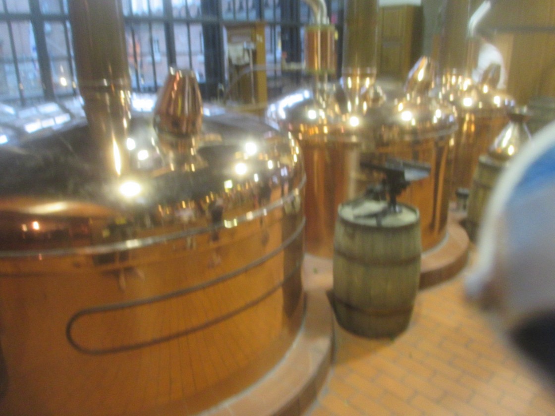 Once seated, she left us alone and the ‘mirror’ above the fireplace sparked into very 21st century life with a video / hologram of the late Mr. Keith telling us more about the history of the place. When that finished, she reappeared and ushered us through to another area, this time obviously connected with the brewing process. I have to say that the vats were absolutely gleaming.