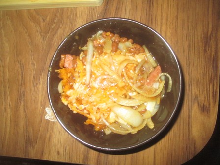I can see onions, cheese, baked beans and bacon (I think) and it obviously seemed like a good idea at that hour with few drinks onboard but what it might be is anyone’s guess, I think it will have to go down as “Chef’s Special” or more properly “Plat du Jour” in this Acadian location.