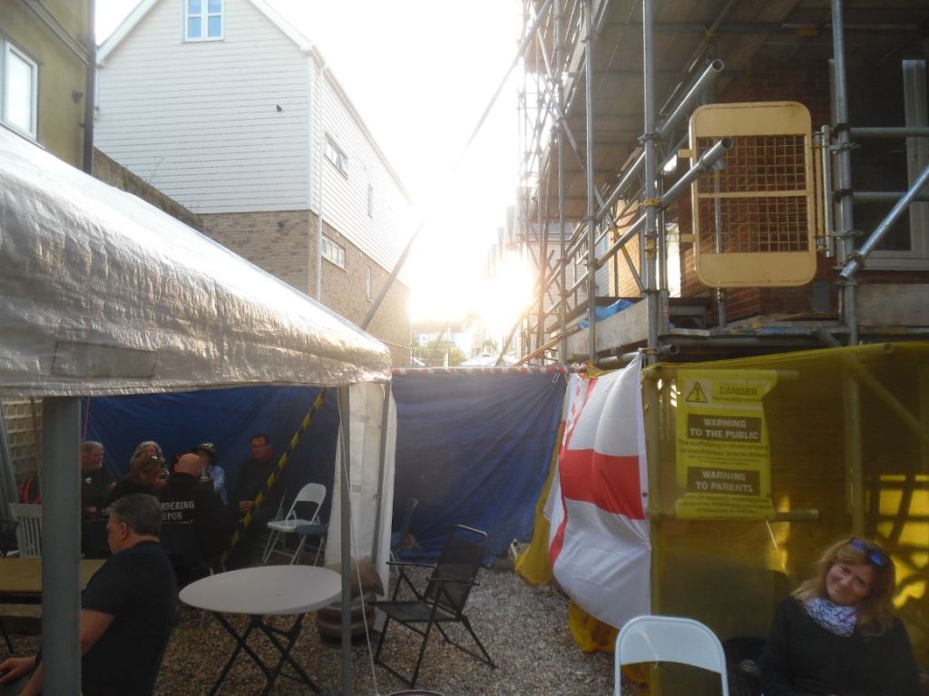The adjoining premises to the rear had been demolished and a new block of flats (apartments) was being built on the site. To be honest, they have being built for a very long time, eleven years at that time, I really don’t know what is going on there. Whatever the reason, the little cul-de-sac alley to the side of the premises and a slightly wider area beyond has been a builder’s yard for years. Nikki and Will approached the developer and the local licensing authorities and did no more than set up a decent sized marquee and an outside bar, designed for impromptu sessions when there were booked acts in the main bar.